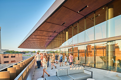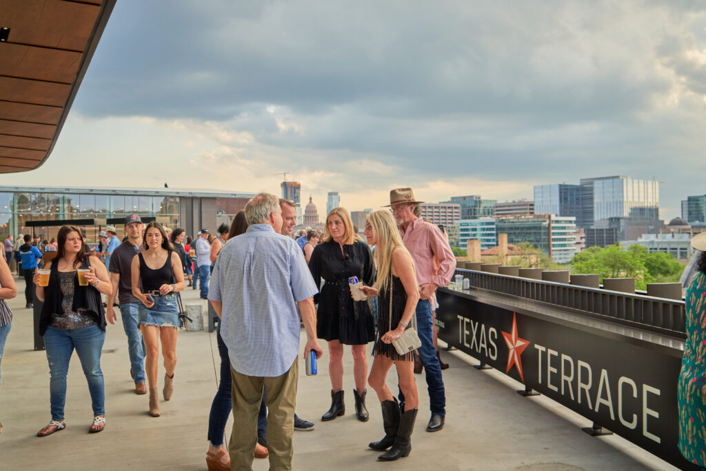 The expansive Brown Distributing Texas Terrace is located on the West side of the arena and overlooks the Dell Technologies Plaza, providing photo-worthy views of Darrell K. Royal Texas Memorial Stadium, Mike Myers Stadium, the Texas State Capitol, and growing skyline of Downtown Austin. This destination area is open to all guests and provides a great place for fans to relax and connect.  The 7,000-square foot space features three full-service bars, drink rails, as well as lounge seating.  On select events, the Terrace will offer unique fan experiences such as games, beer sampling, photo booths, etc. We invite you to come check it out!