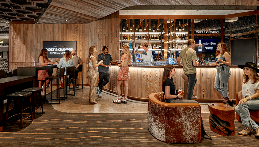 The Germania Insurance Club is our finest sideline Club within Moody Center, located behind the lower level of the north sideline. Inspired by the great state of Texas, the intimate space is filled with rich oak and mahogany, reminiscent of Texas and serves as the soul of our building.